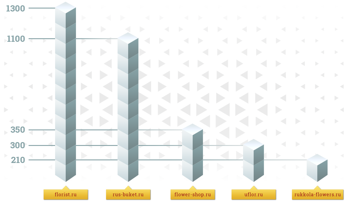 Большим ИКС могут похвастаться 2 сайта в тематике rus-buket.ru и florist.ru, что соответствует их возрасту. Все остальные значимые игроки имеют показатель 200-300. Новому сайту при грамотной работе на это нужно 2-3 года.