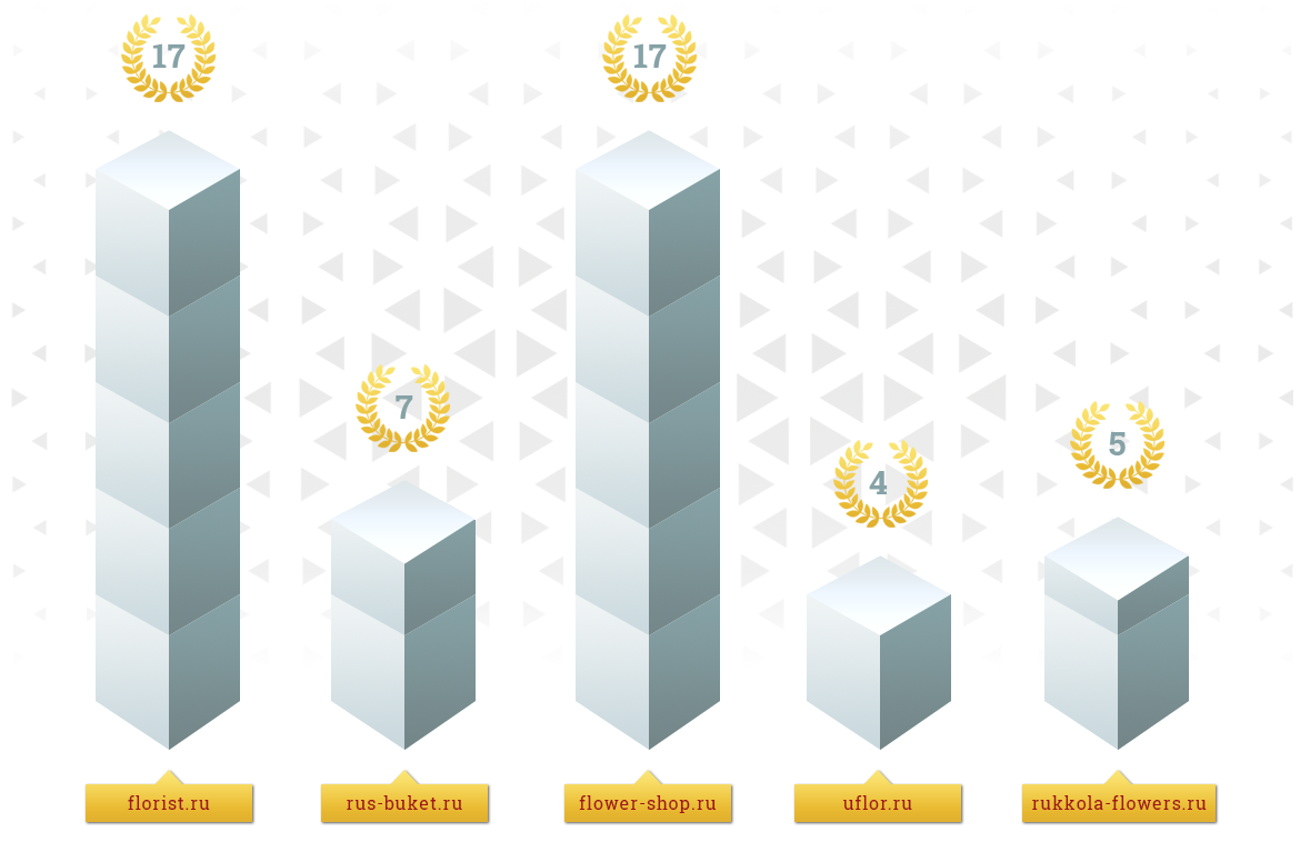 Учитывая наш опыт работы, мы решили подготовить полноценное исследование результатов seo-продвижения сайта и описать – какие факторы являются ключевыми при раскрутке сайта в тематике «Доставка цветов». В рамках исследования мы оцениваем уровень известности ресурсов в России без стран СНГ.
