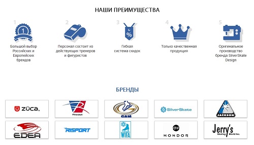 Блоки с преимуществами и брендами