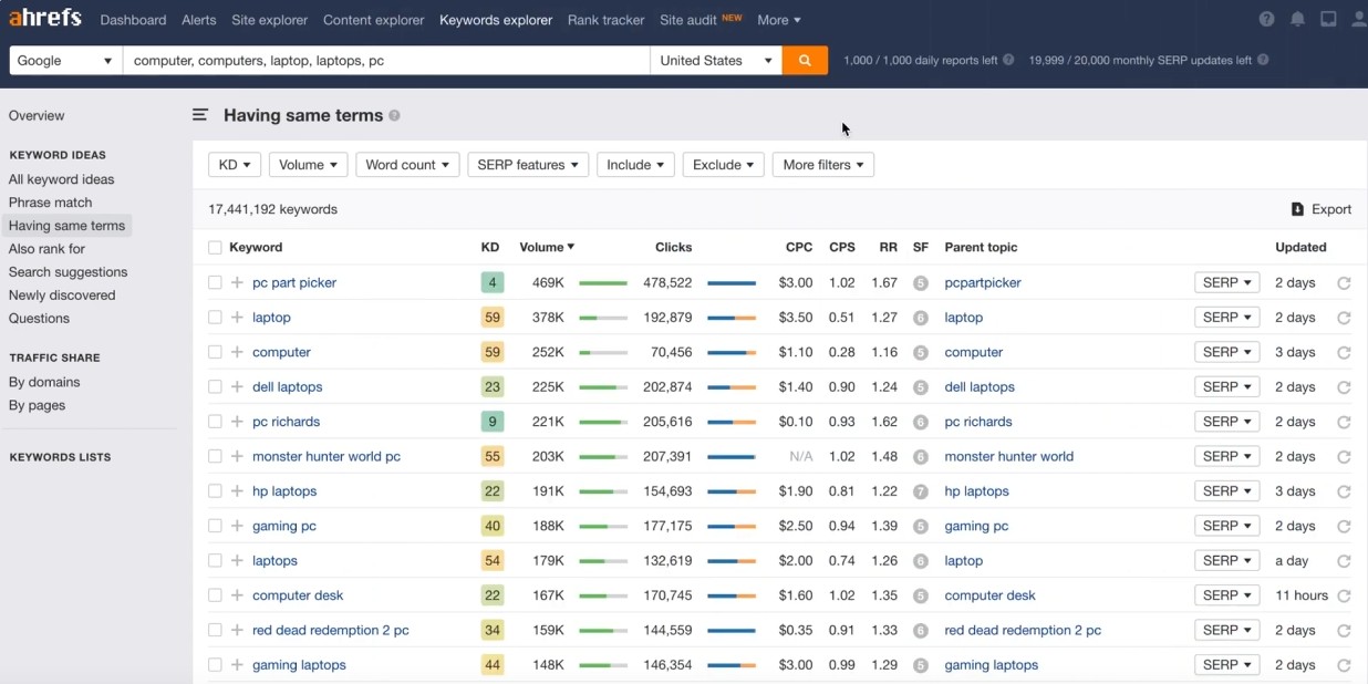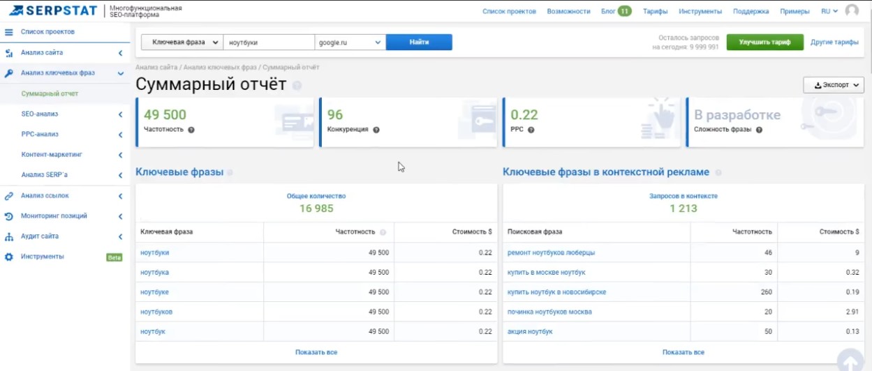 При составлении ядра ключевых слов необходимо найти термины, которые имеют потенциал для расширенных сниппетов. Для этого обратитесь к функционалу сервисов, таких как Serpstat и Ahrefs. Там же посмотрите, нет ли на вашем сайте уже запросов, которые органически попадают в ТОП выдачи. Если есть, первым делом нужно оптимизировать именно его.
