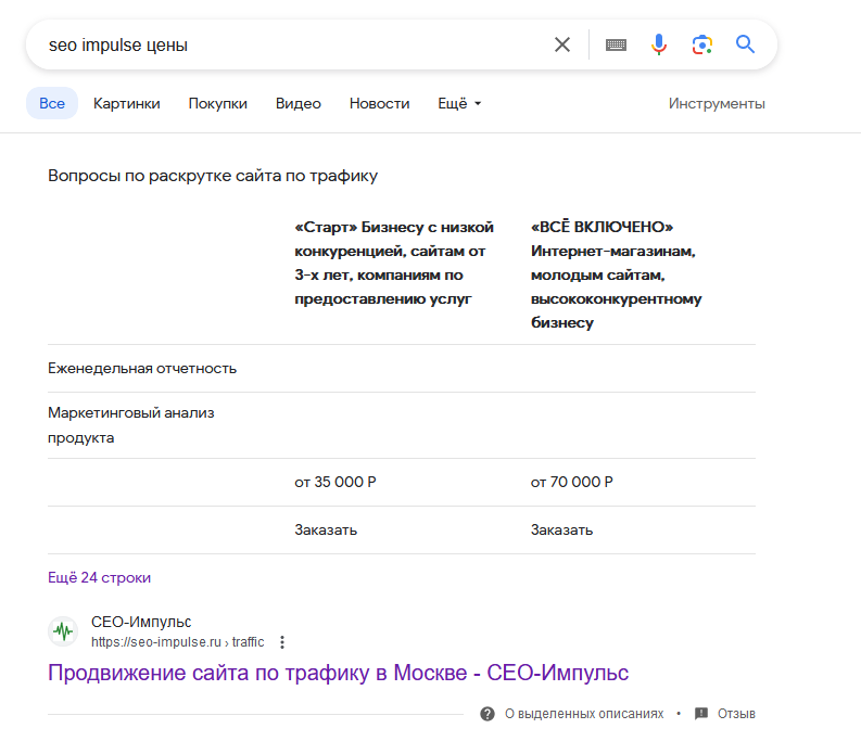 Для получения расширенного сниппета, следует учесть, что информация для него берется с сайтов из ТОП-10. Следовательно, сначала необходимо поднять рейтинг одной из страниц ресурса в списке выдачи Google или Яндексе.